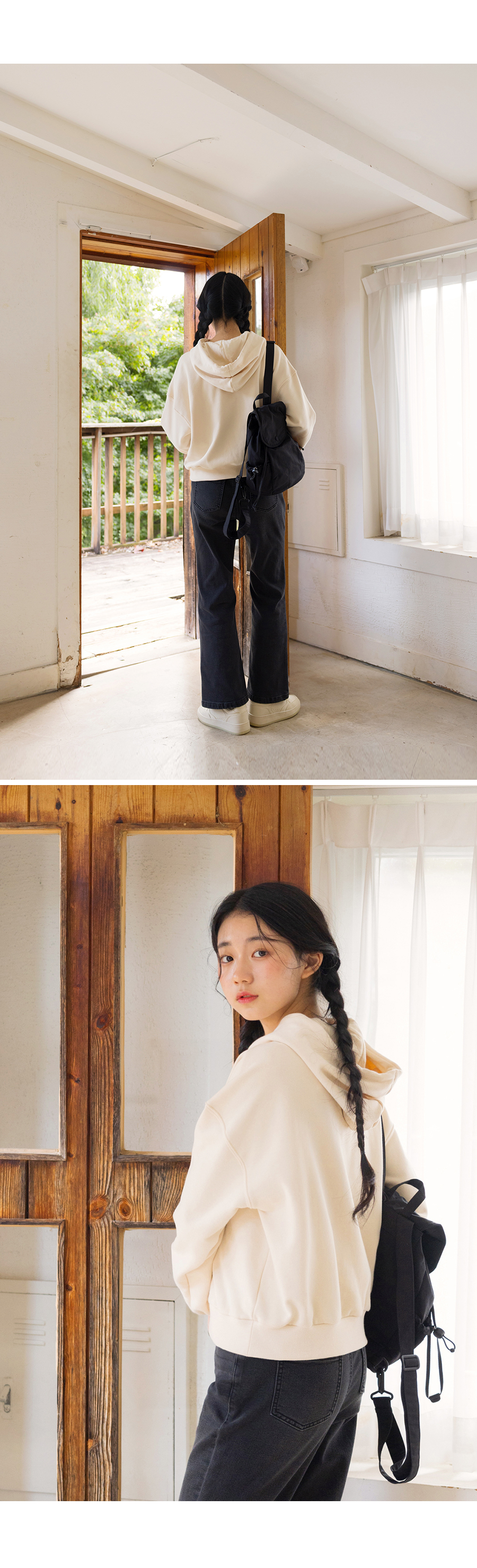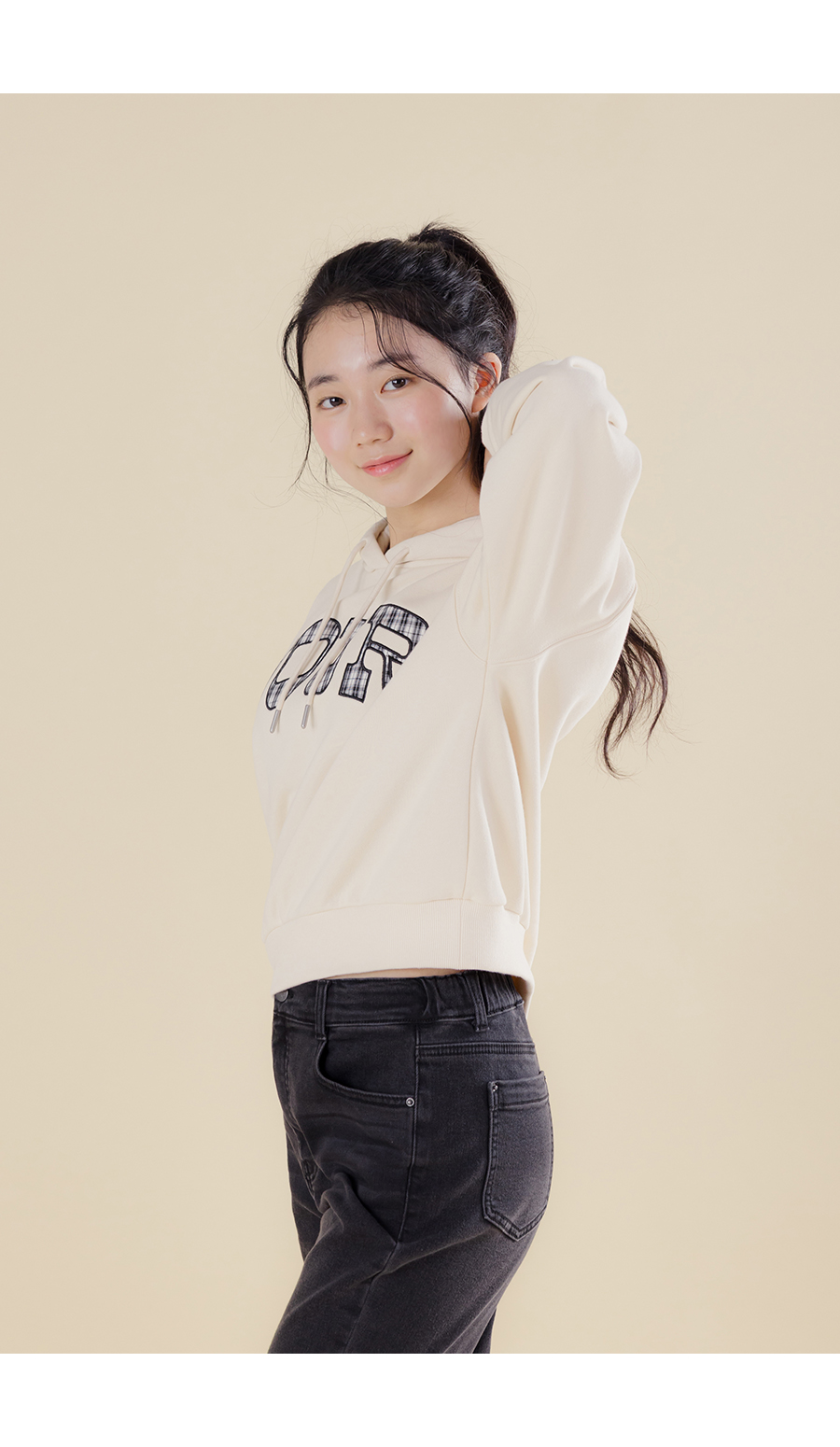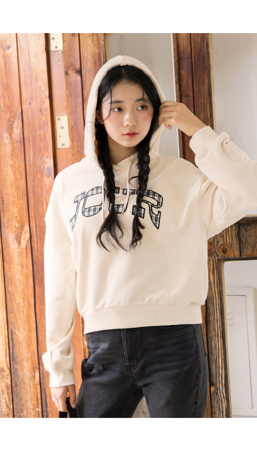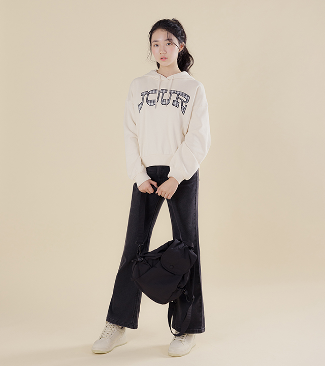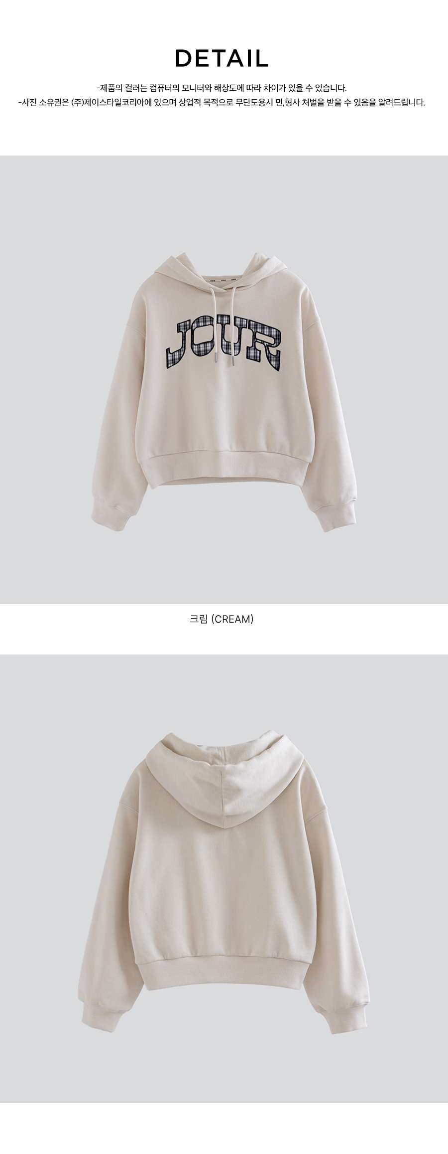 G.주르 기모 크롭후드 맨투맨 티