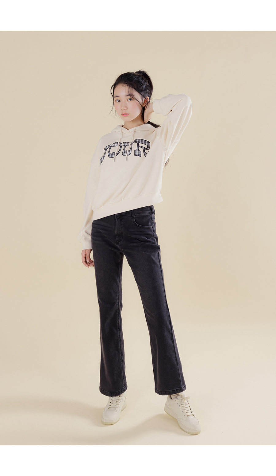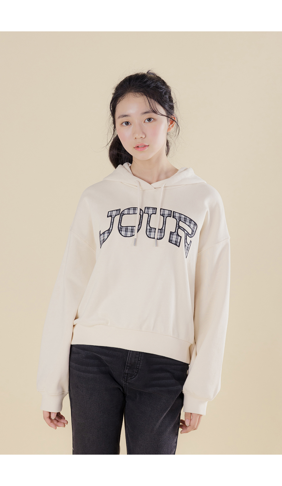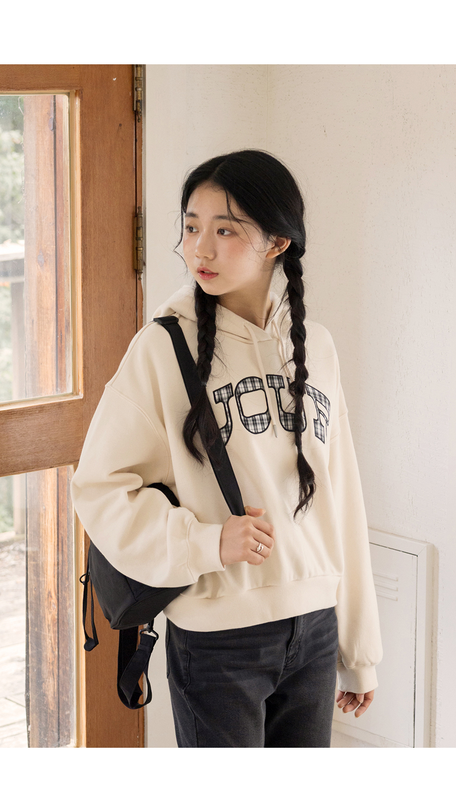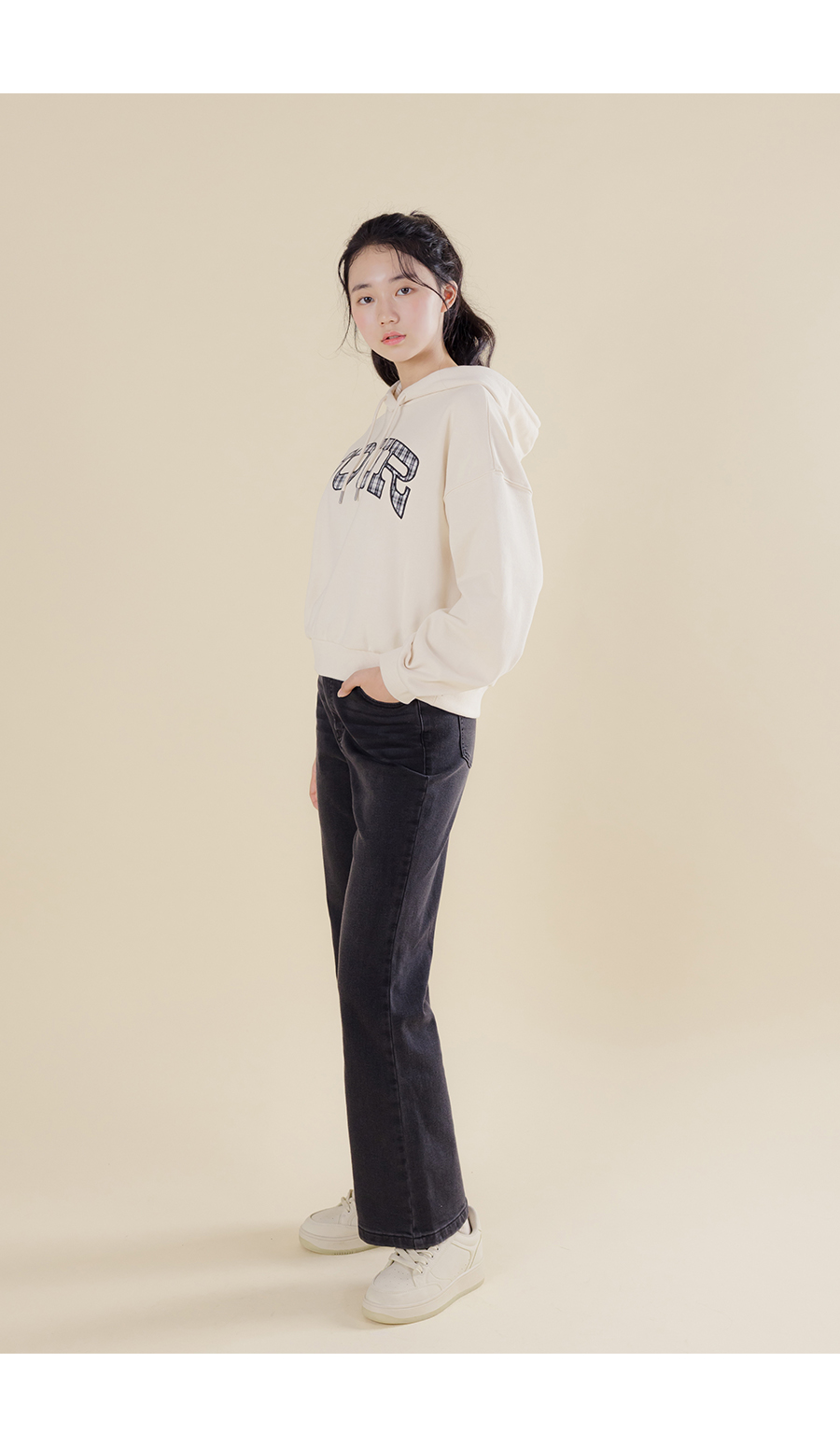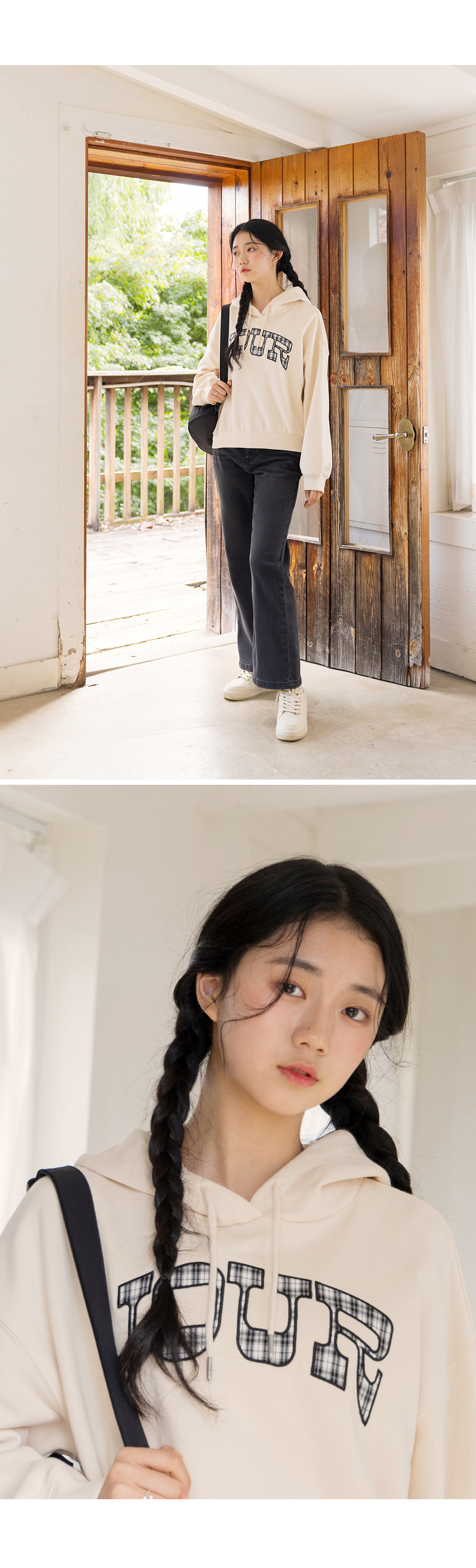 G.주르 기모 크롭후드 맨투맨 티