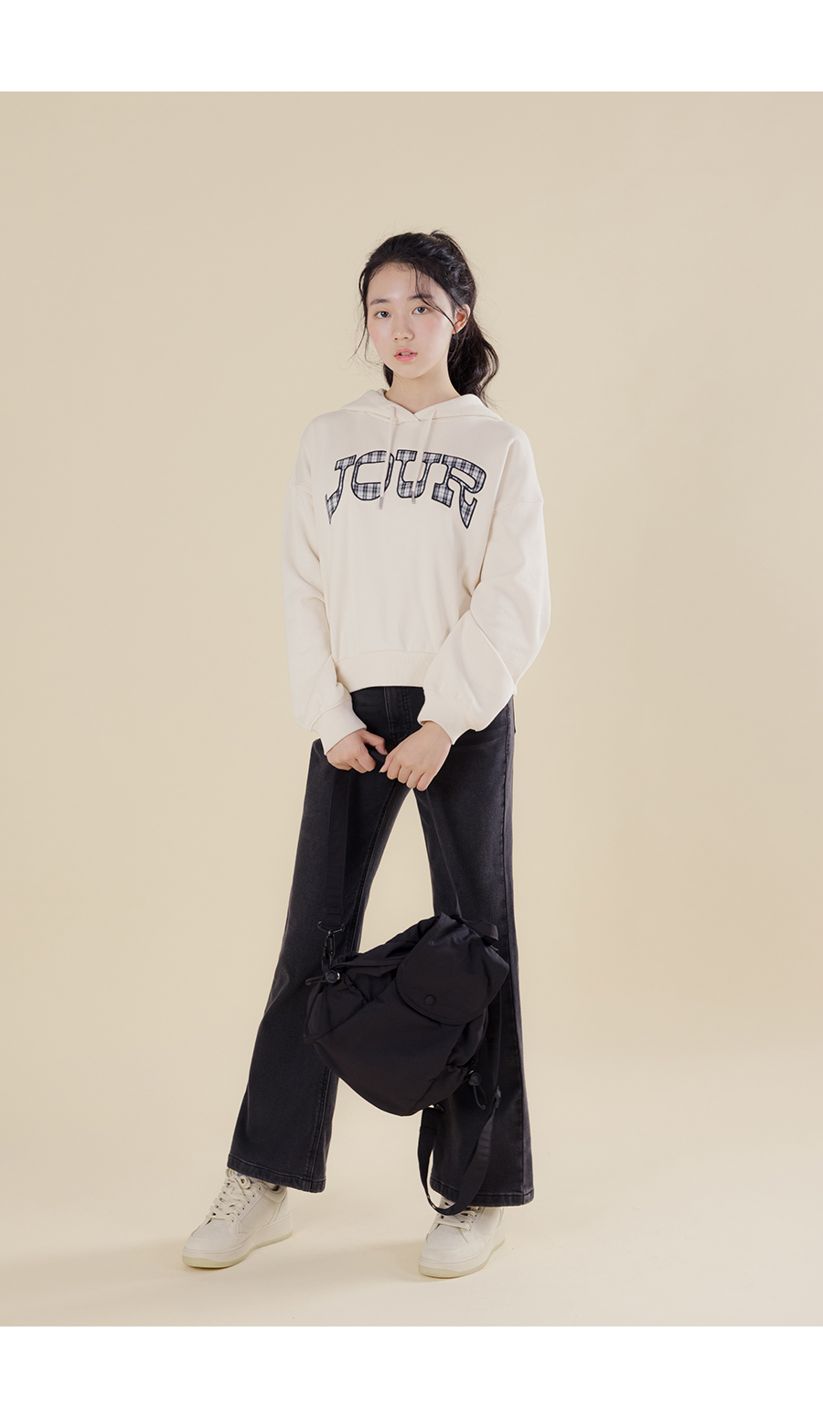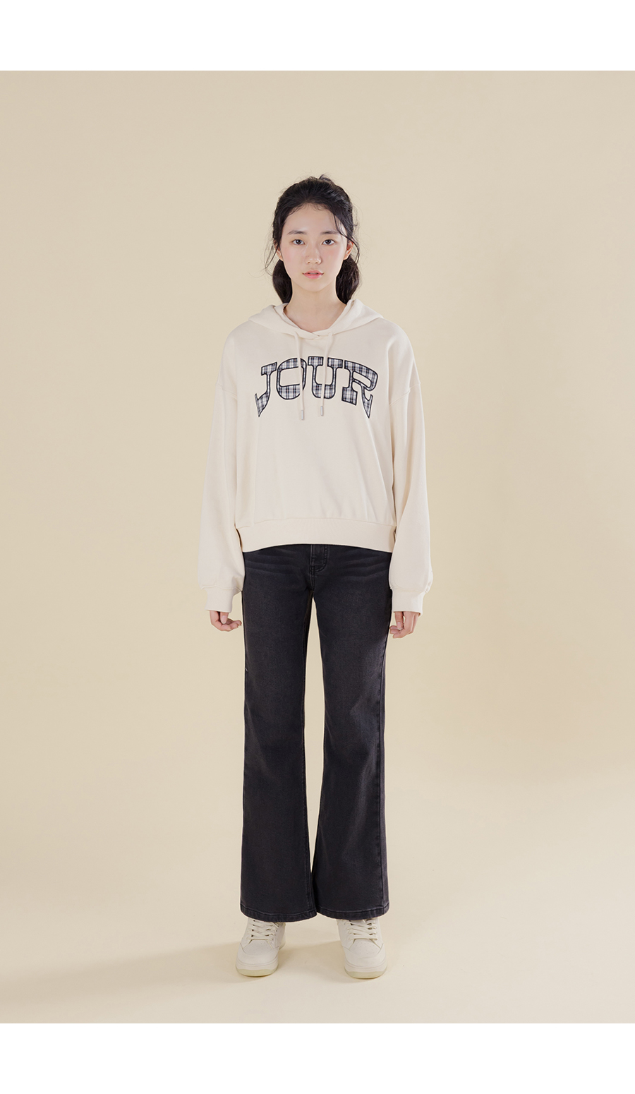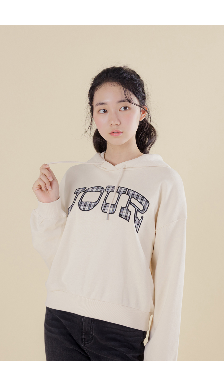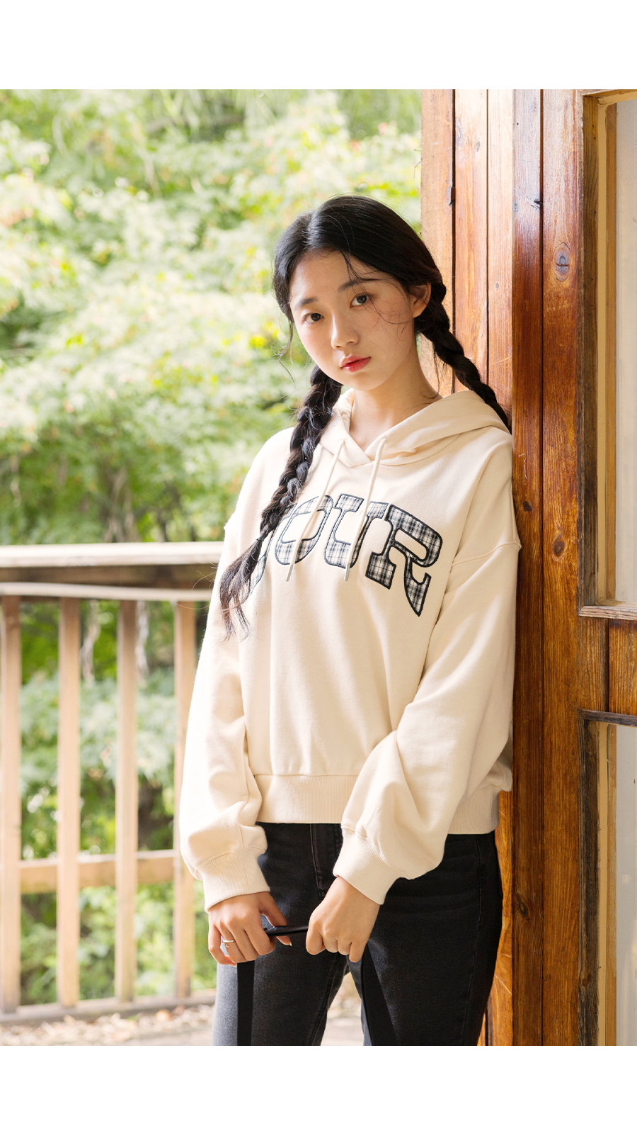 G.주르 기모 크롭후드 맨투맨 티