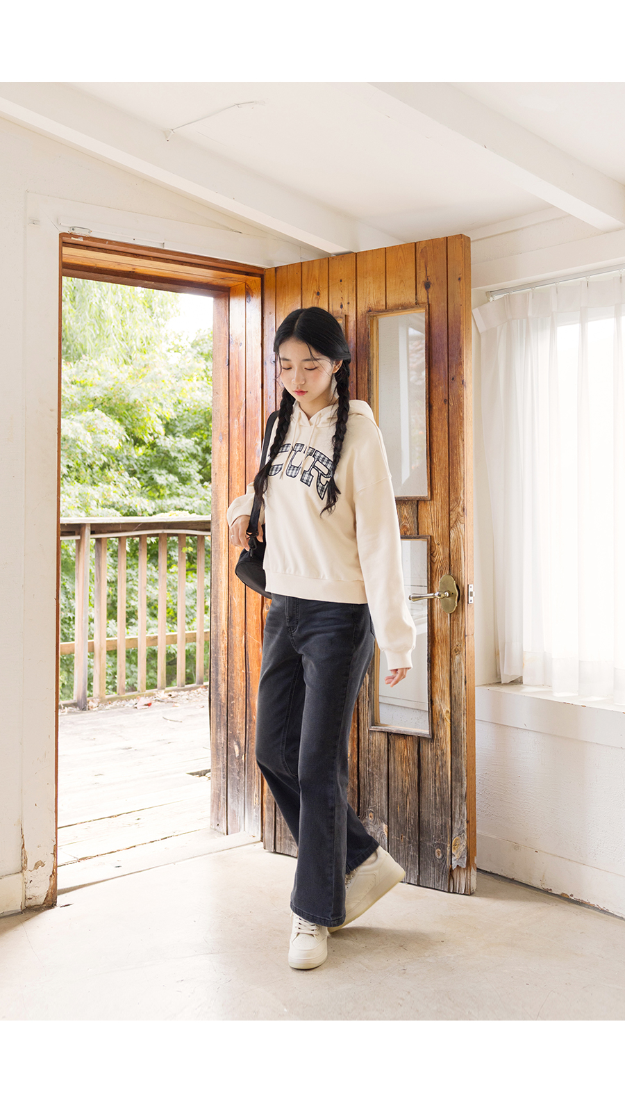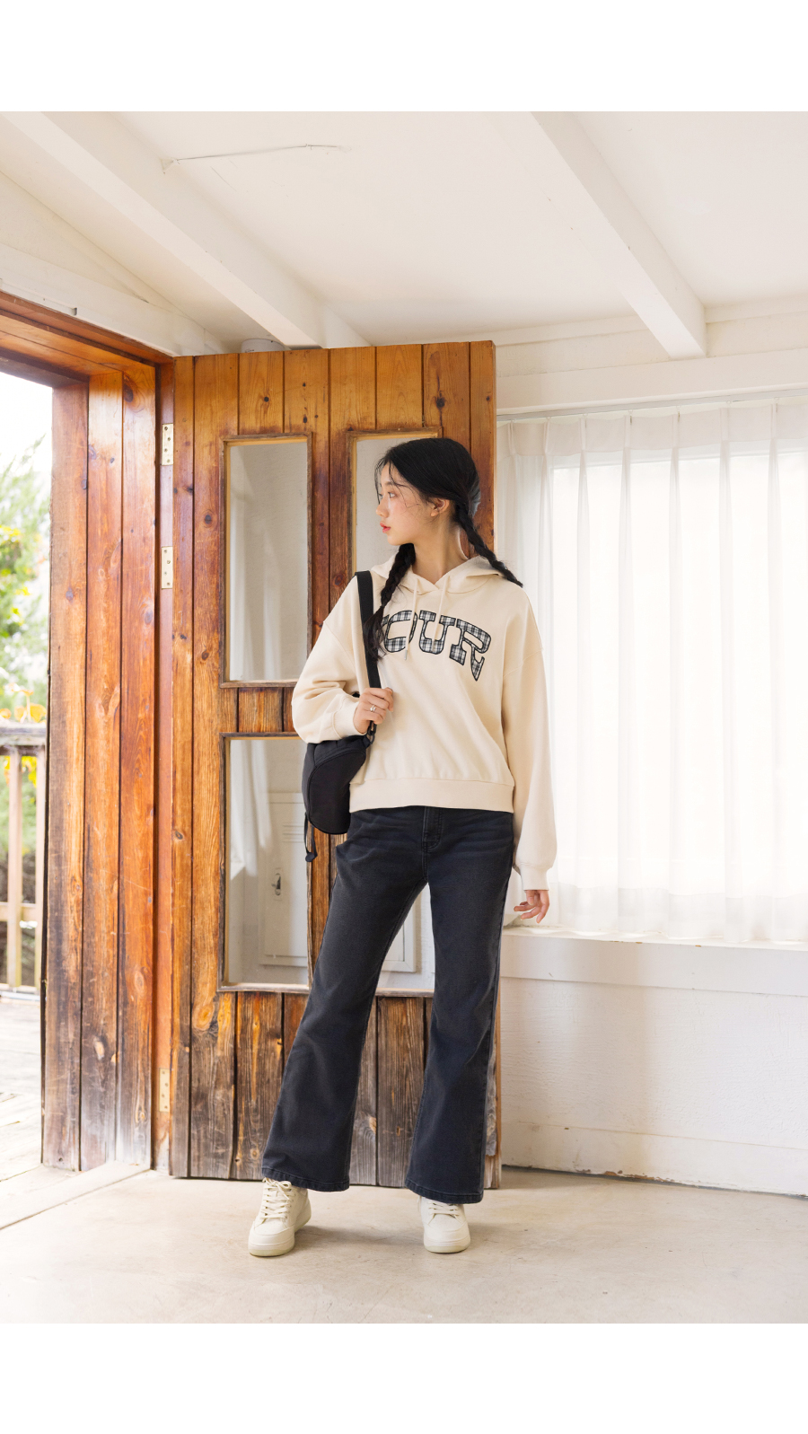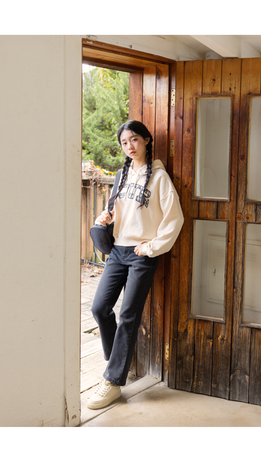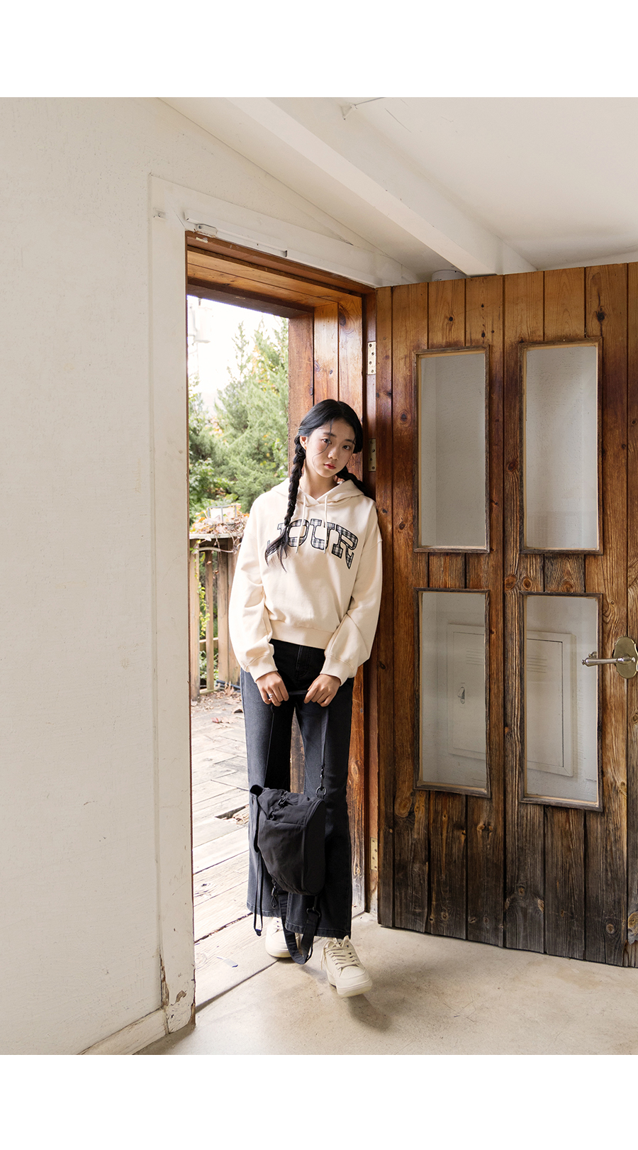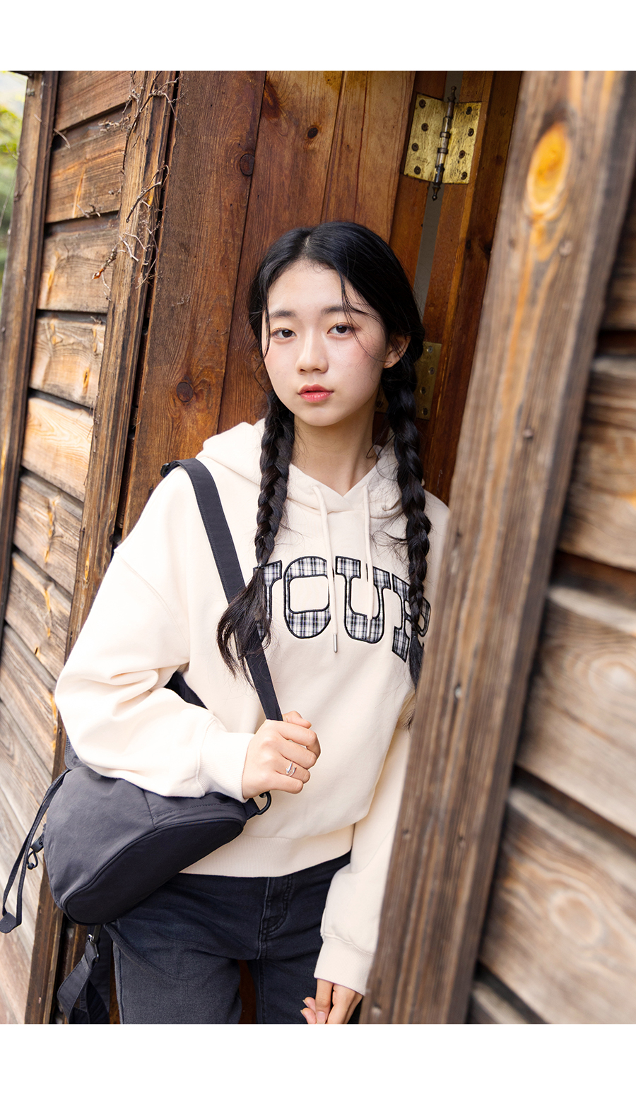 G.주르 기모 크롭후드 맨투맨 티